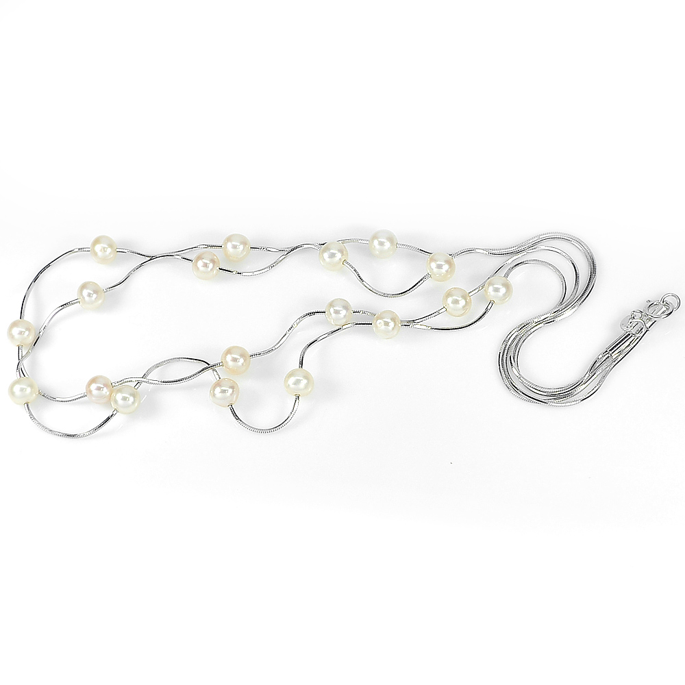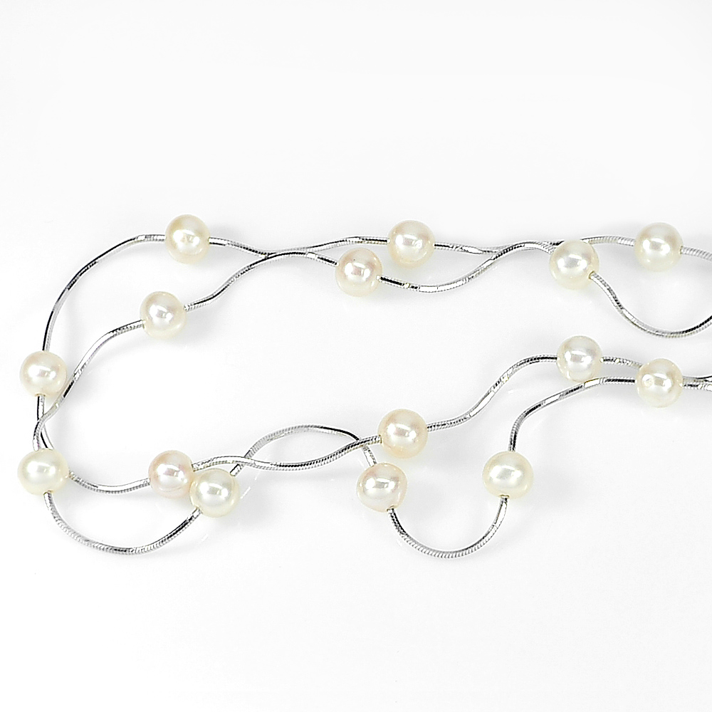 8.67 G. Natural Orange Pearl Silver Jewelry Necklace Length 16 Inch.
