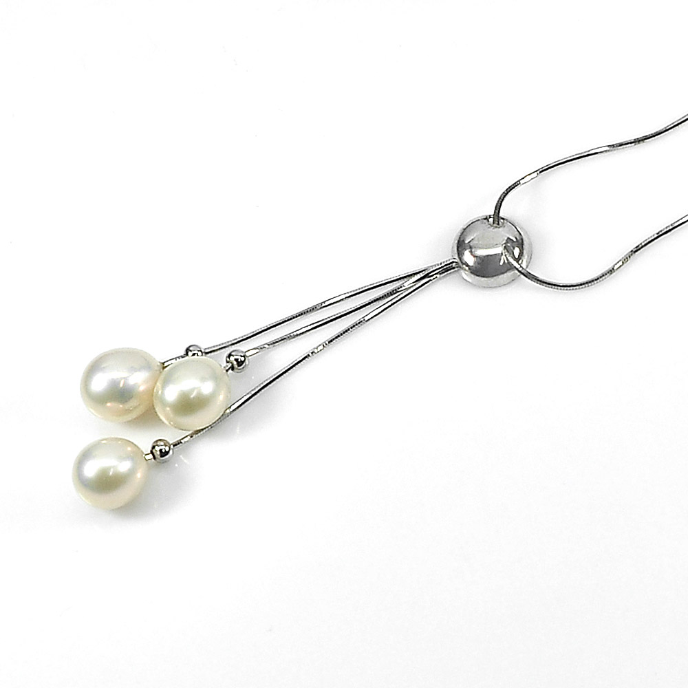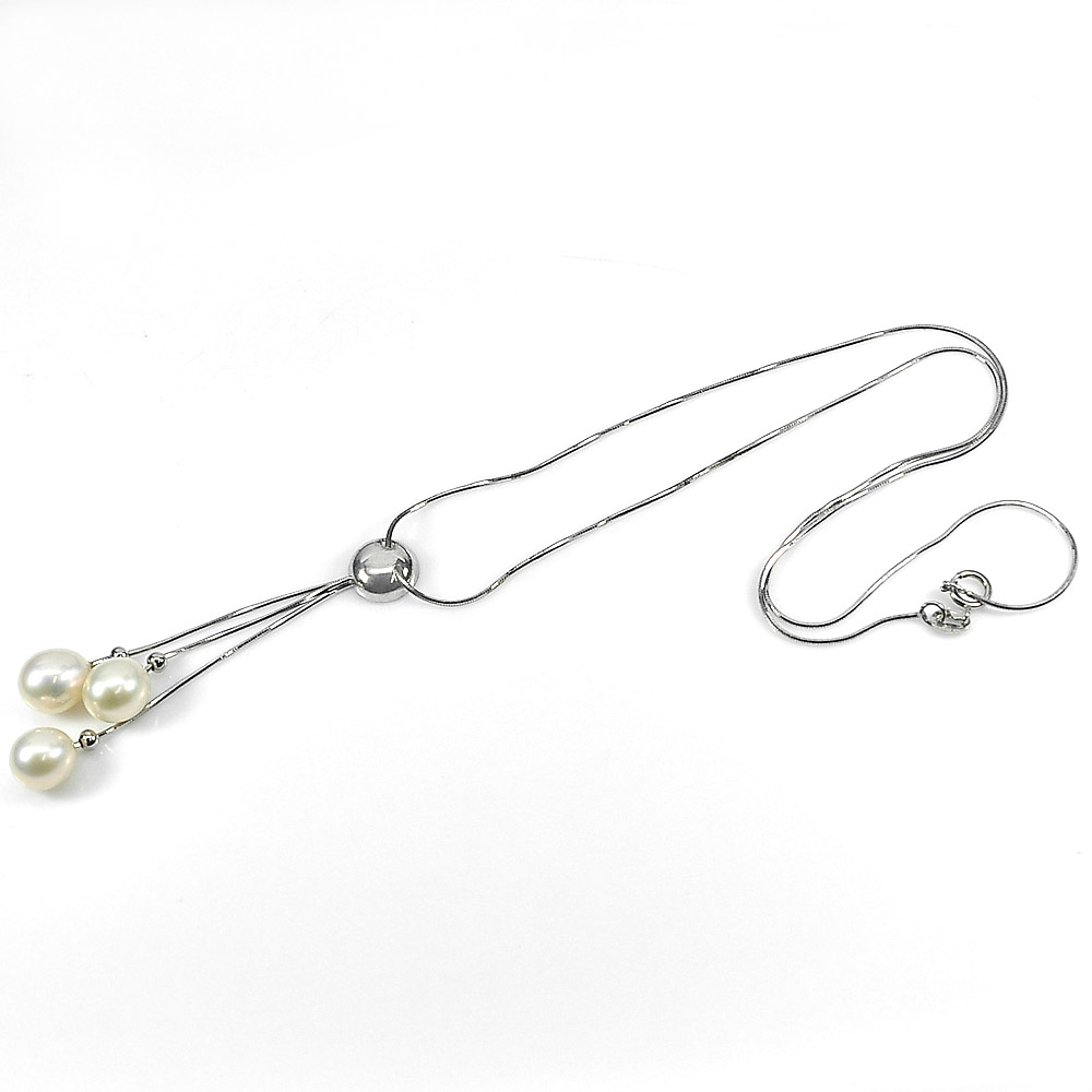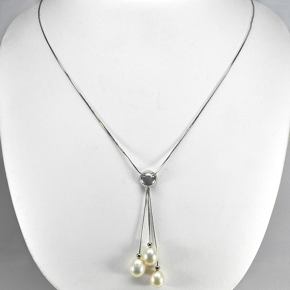 6.78 G. Real 925 Sterling Silver Necklace Length 20 Inch. Natural White Pearl
