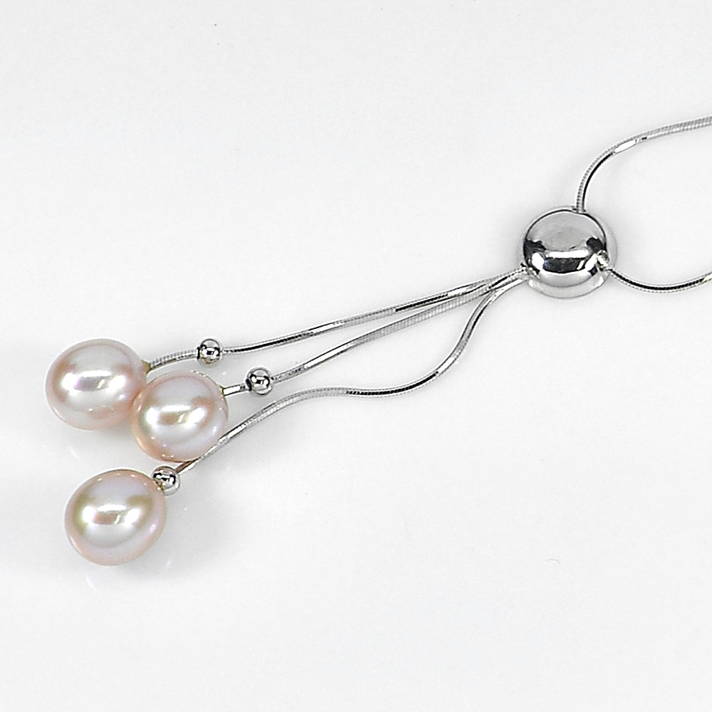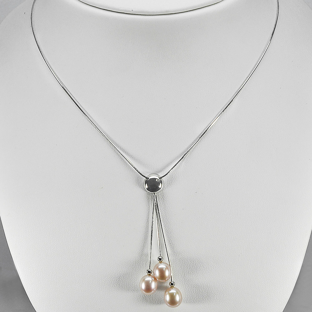 6.93 G. Pretty Natural Pink Pearl Sterling Silver Necklace Length 22 Inch.