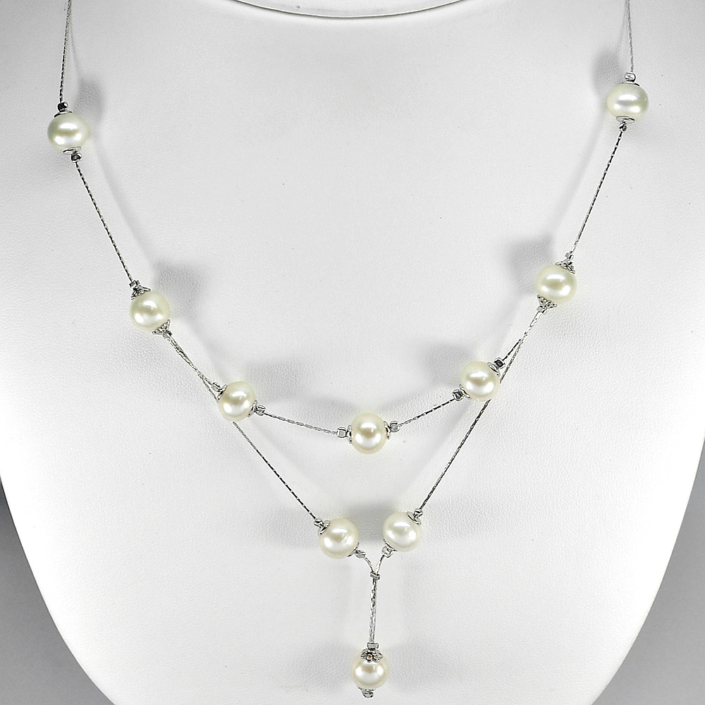 11.72 G. Wonderful Natural White Pearl Silver Necklace Length 20 Inch.