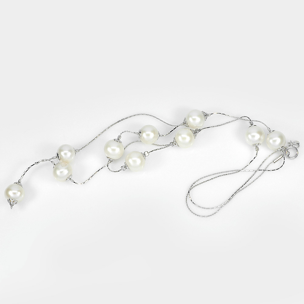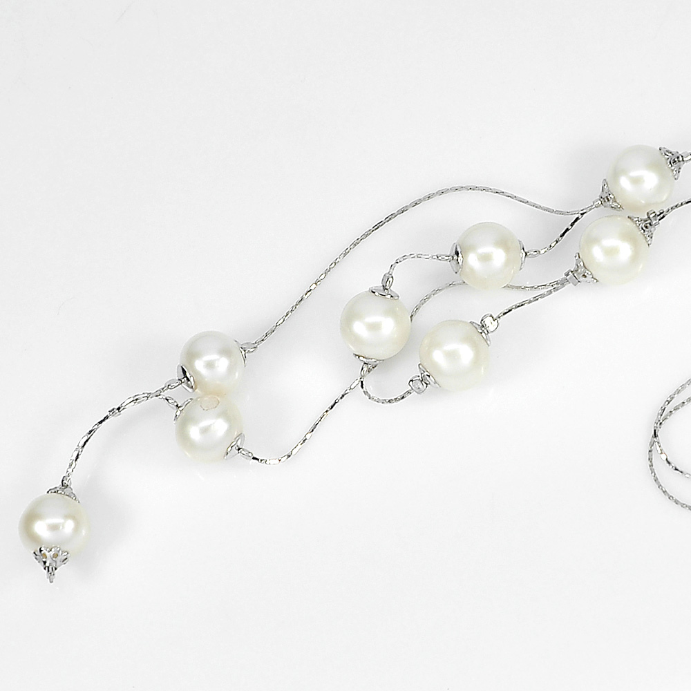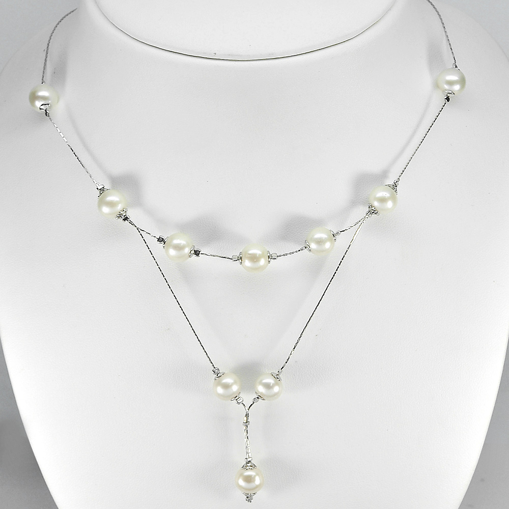 12.38 G. Nice Sterling Silver Necklace Length 21 Inch. Natural White Pearl