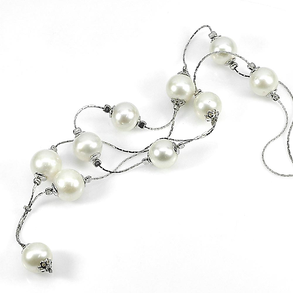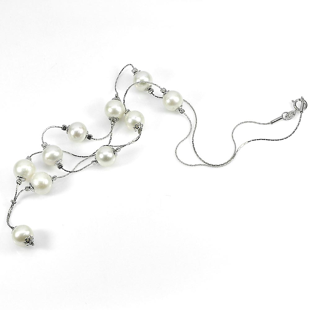 12.73 G. Natural White Pearl Real 925 Sterling Silver Necklace Length 20 Inch.