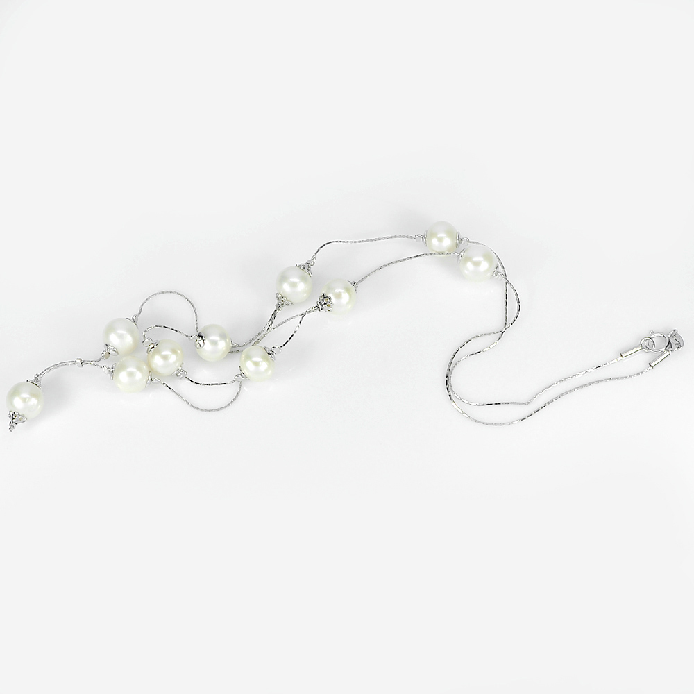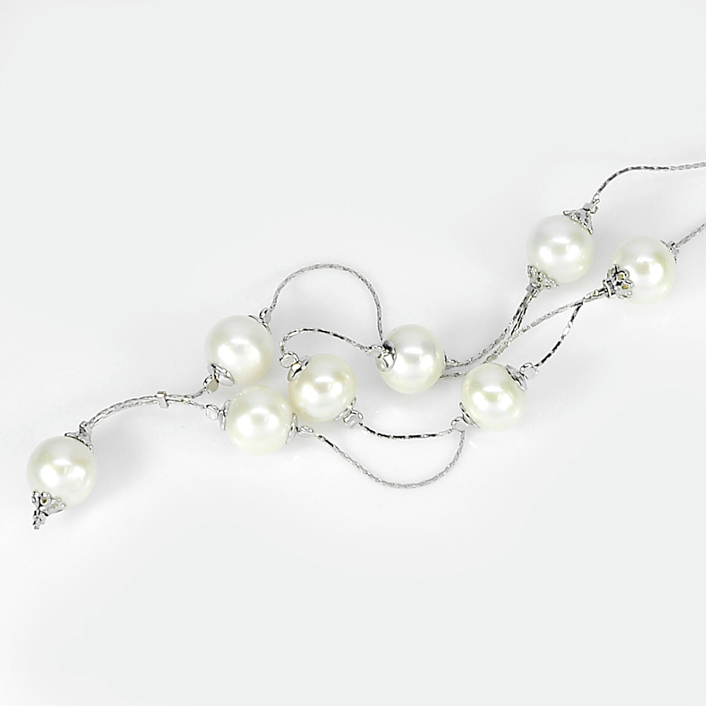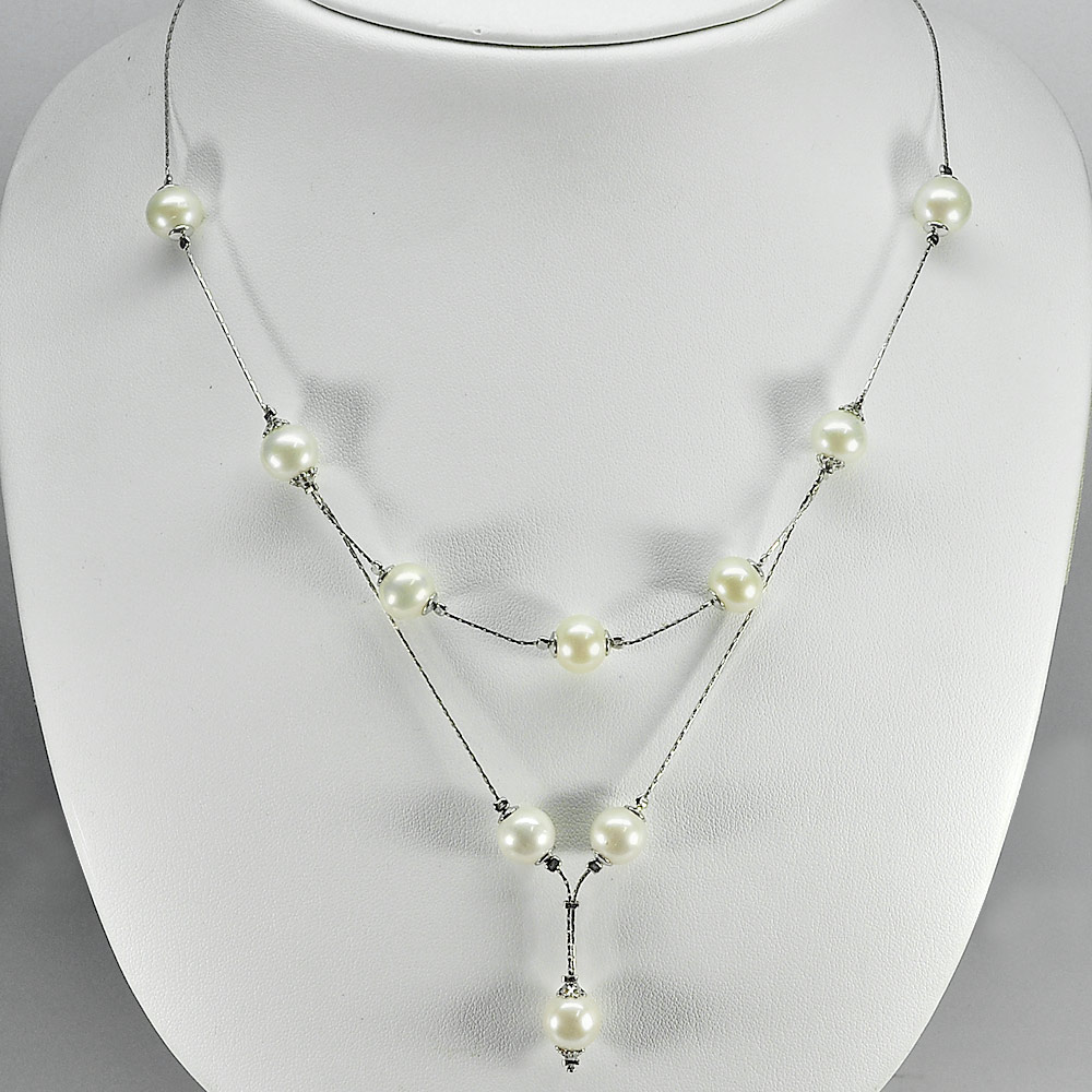 11.92 G. Nice Sterling Silver Necklace Length 21 Inch. Natural White Pearl