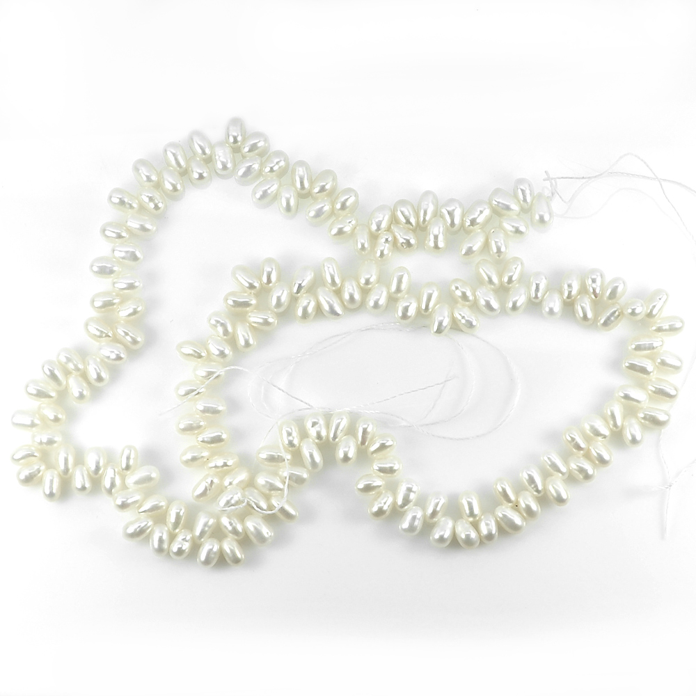 White Pearl Beads Strand Length 16 Inch. 87.53 Ct. Fancy Cabochon 5.2 Mm Natural