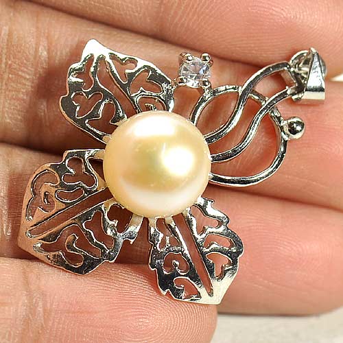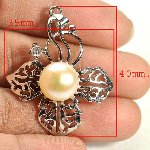 4.79 G. Beautiful Natural White Pearl Rhodium Silver Plated Pendant