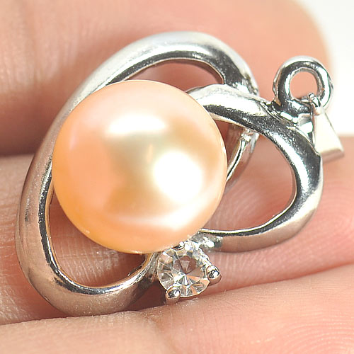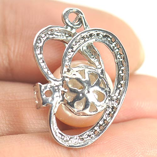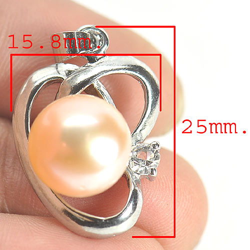 3.14 G. Round Cabochon Natural Peach Pearl Rhodium Silver Plated Pendent