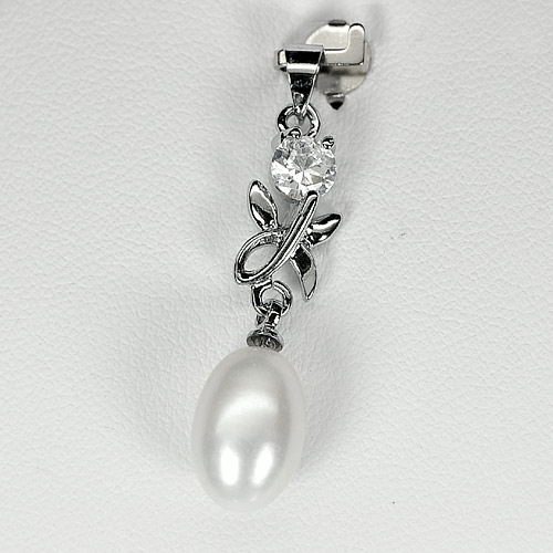 Beautiful 2.32 G. Natural White Pearl Rhodium Silver Plated Pendant