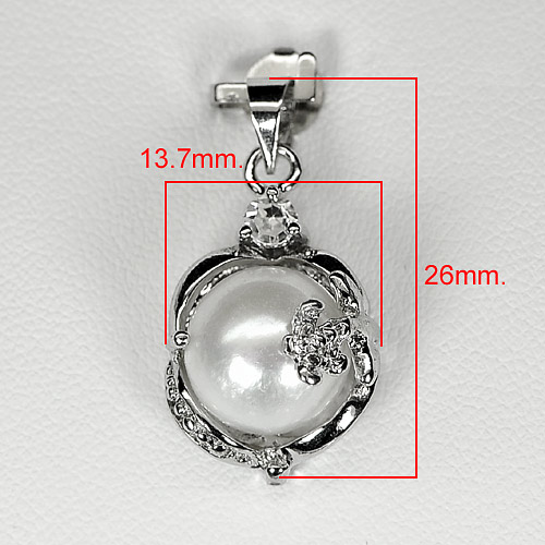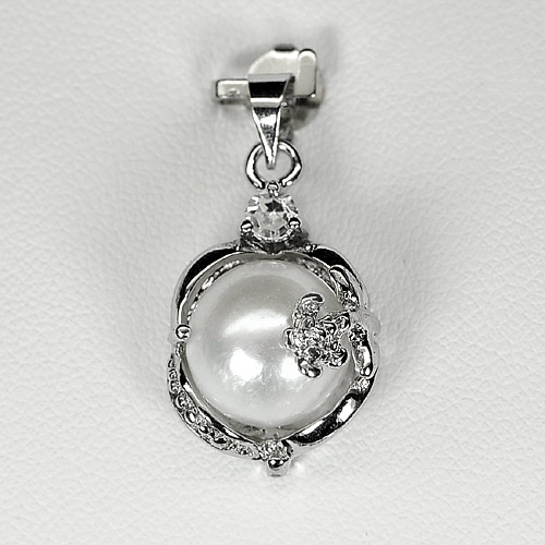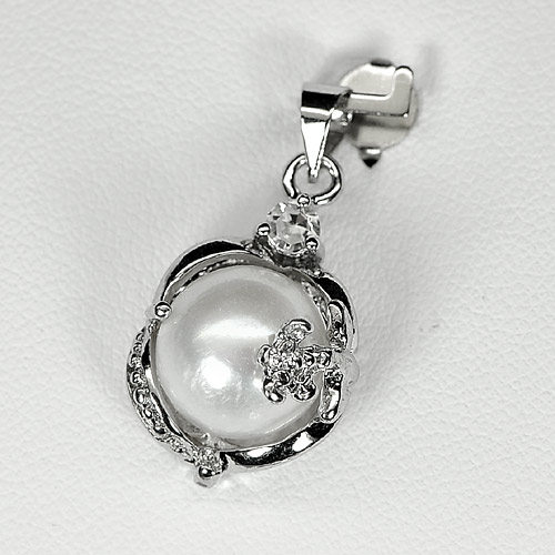 Charming 3.46 G. Natural White Pearl Rhodium Silver Plated Pendant