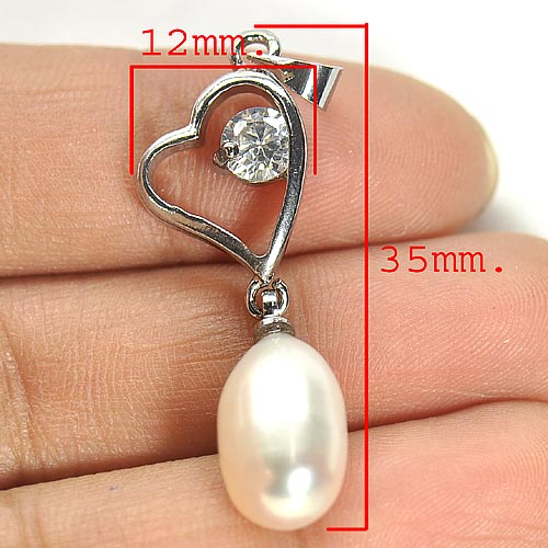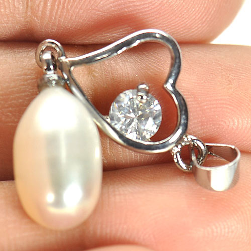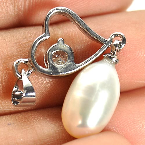 2.77 G. Fancy Cabochon Natural White Pearl Rhodium Silver Plated Pendant