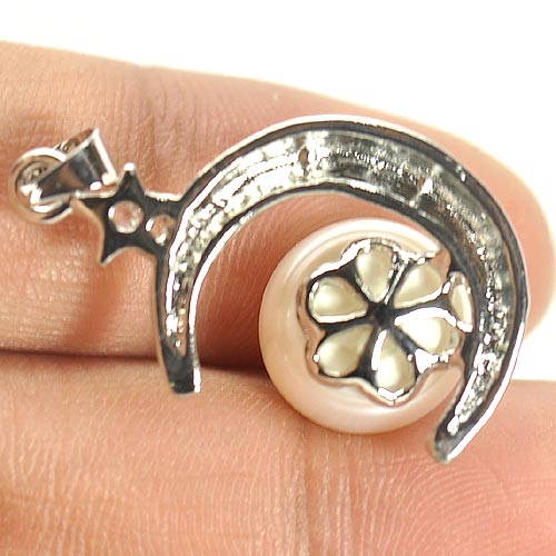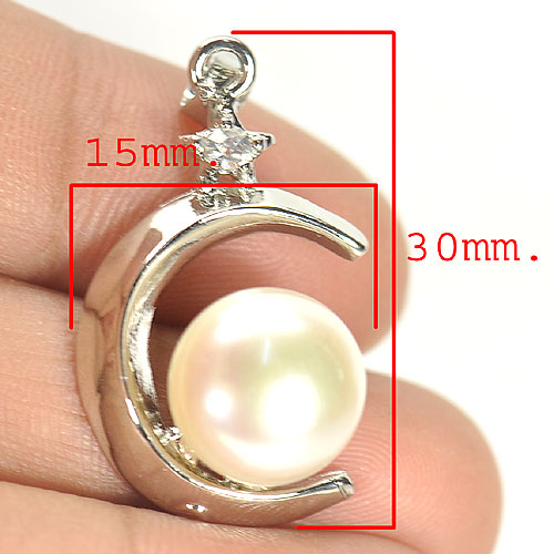 3.05 G. Beautiful Natural White Pearl Rhodium Silver Plated Pendant