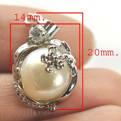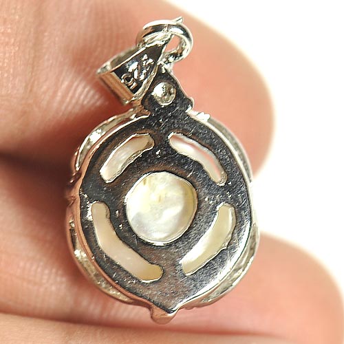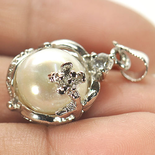 3.82 G. Natural White Pearl Rhodium Silver Plated Pendent Round Cabochon