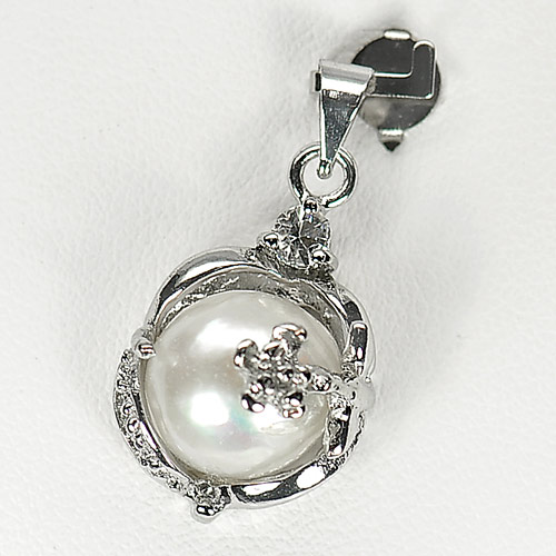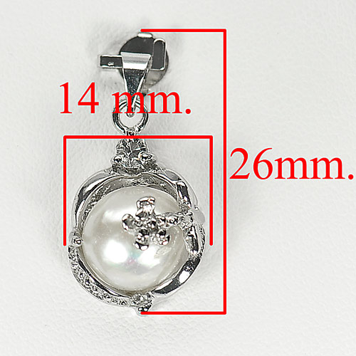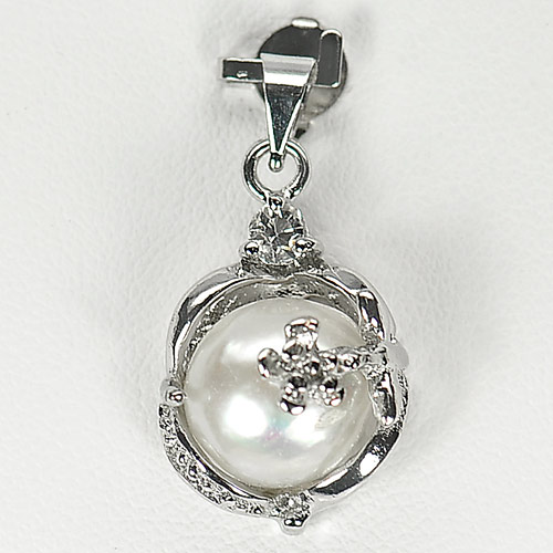 Alluring 3.39 G. Natural White Pearl Rhodium Silver Plated Pendant