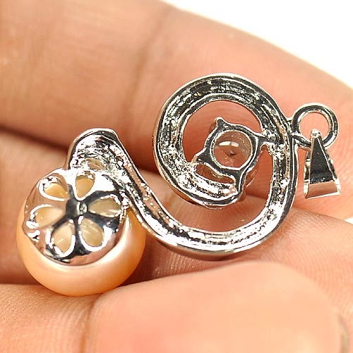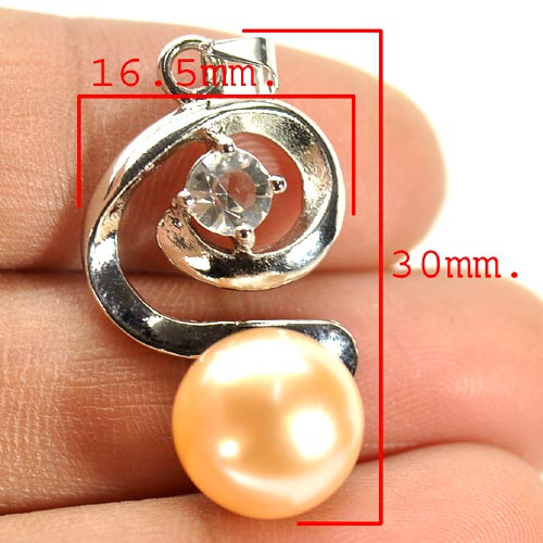 3.47 G. Charming Natural Peach Pearl Rhodium Silver Plated Pendant