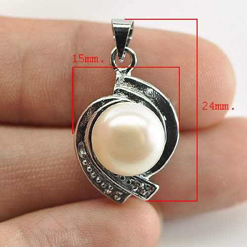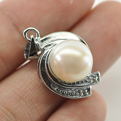 3.48 G. Natural White Pearl Rhodium Silver Plated Pendent Round Cabochon