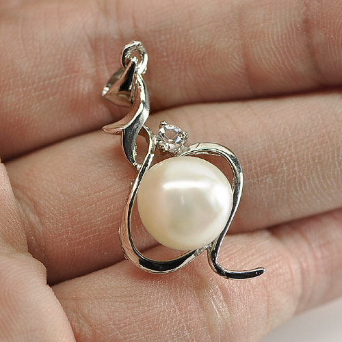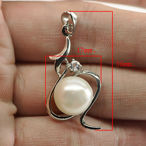 2.88 G. Charming Natural White Pearl Rhodium Silver Plated Pendent