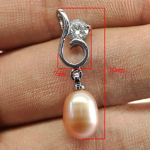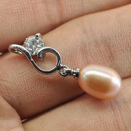 1.91 G. Natural Peach Pearl Rhodium Silver Plated Pendant Fancy Cabochon