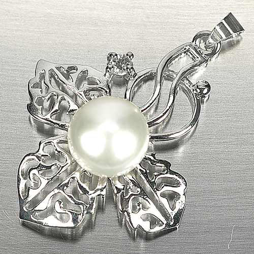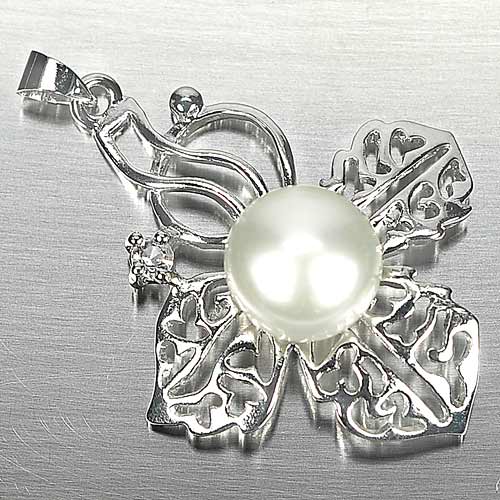 5.01 G. Delightful Natural White Pearl Rhodium Silver Plated Pendent