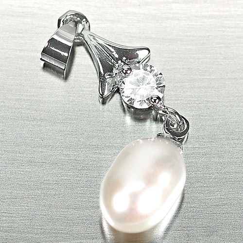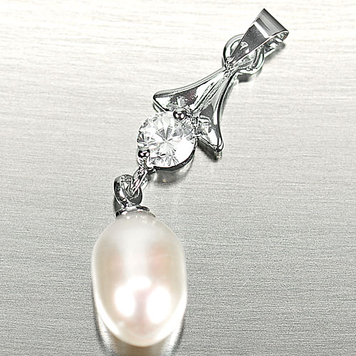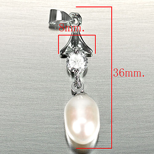 2.04 G. Natural White Pearl Rhodium Silver Plated Pendant Thailand
