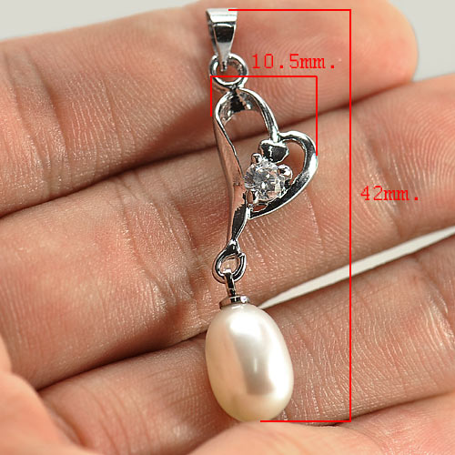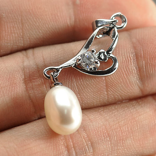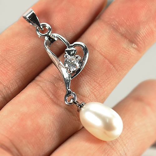 2.22 G. Fancy Cabochon Natural White Pearl Rhodium Silver Plated Pendant