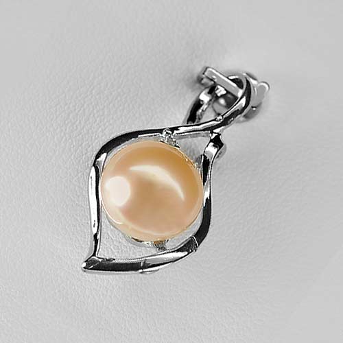 2.65 G. Beautiful Natural Orange Pearl Rhodium Silver Plated Pendant