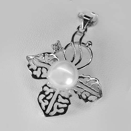 Good 4.87 G. Natural White Pearl Rhodium Silver Plated Pendant