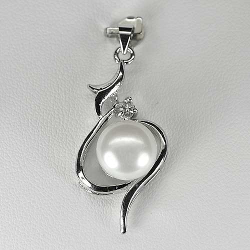 3.27 G. Delightful Natural White Pearl Rhodium Silver Plated Pendant
