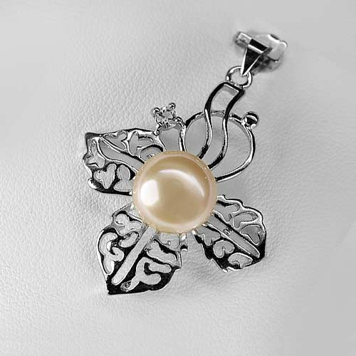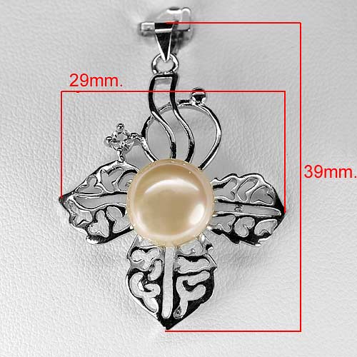 Alluring 4.50 G. Natural Peach Pearl Rhodium Silver Plated Pendant
