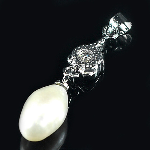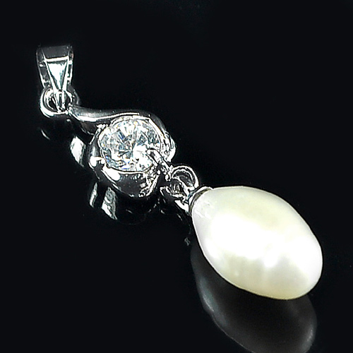 2.14 G. Fancy Cabochon Natural White Pearl Rhodium Silver Plated Pendant
