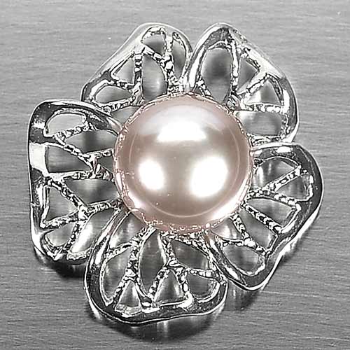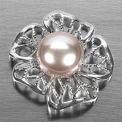 3.39 G. Round Cabochon Natural Multi-Color Pearl Rhodium Silver Plated Pendant