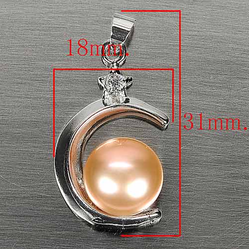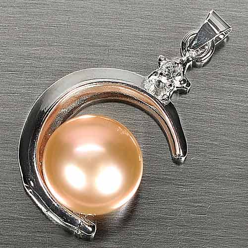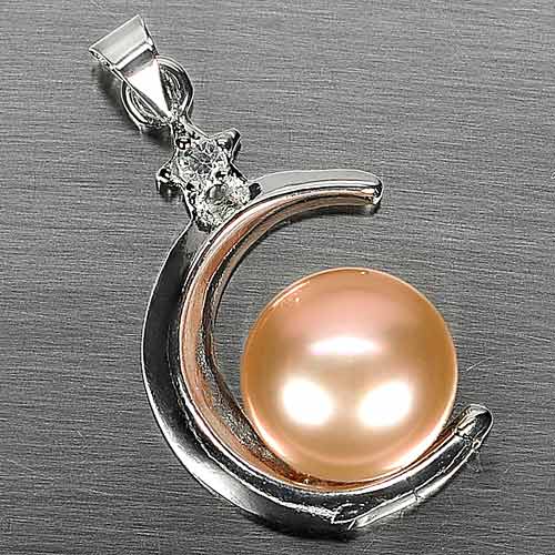2.89 G. Round Cabochon Natural Orange Pearl Rhodium Silver Pendant
