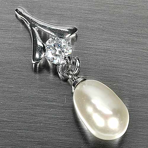 2.25 G. Fancy Cabochon Natural White Pearl Rhodium Silver Plated Pendent