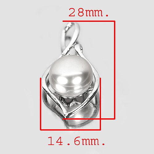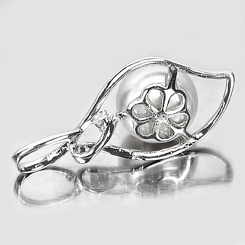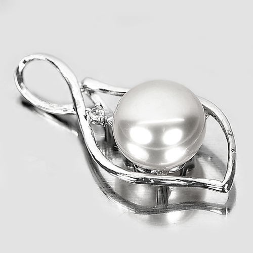 3.18 G. Round Cabochon Natural White Pearl Rhodium Silver Plated Pendant
