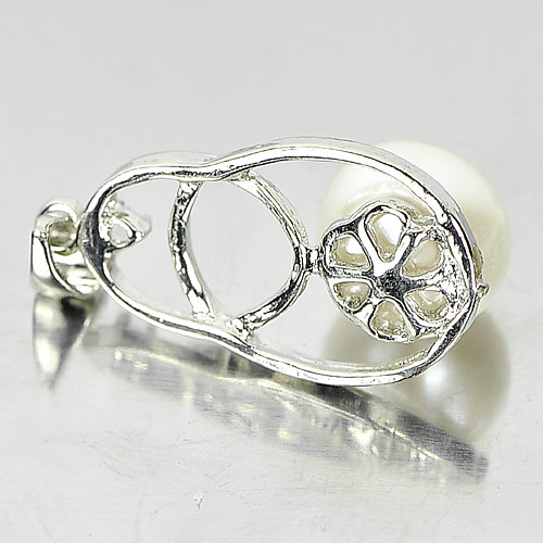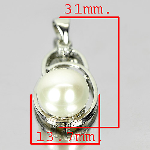 2.96 G. Round Cabochon Natural White Pearl Rhodium Silver Plated Pendant