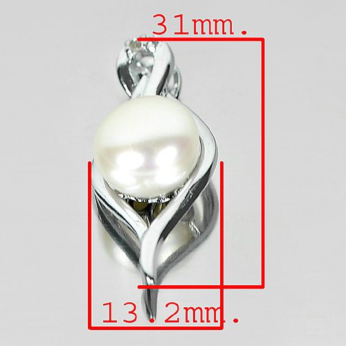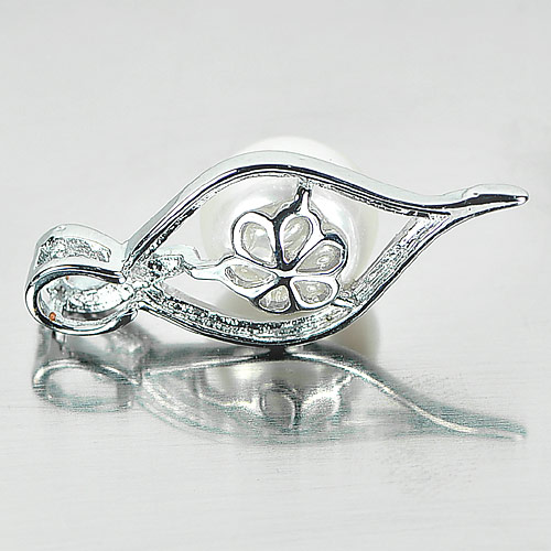 2.95 G. Round Cabochon Natural White Pearl Rhodium Silver Plated Pendant