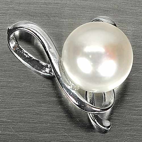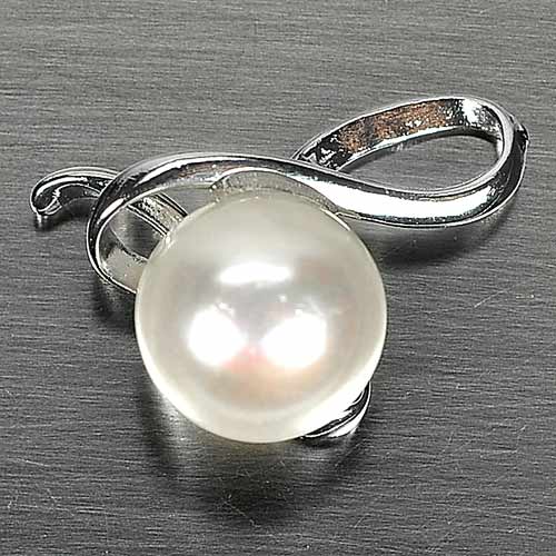 2.03 G. Charming Natural White Pearl Rhodium Silver Plated Pendant