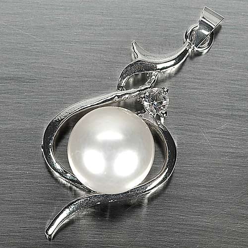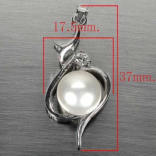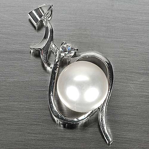 3.59 G. Round Cabochon Natural White Pearl Rhodium Silver Plated Pendent
