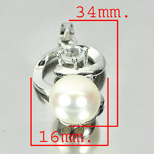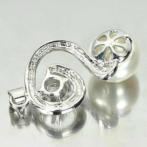 3.50 G. Round Cabochon Natural White Pearl Rhodium Silver Plated Pendant