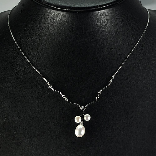 4.99 G. Beautiful Natural White Pearl Sterling Silver Necklace Length 10 Inch.