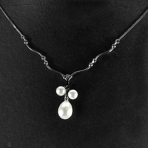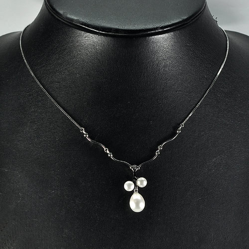 5.03 G. Good Natural White Pearl Sterling Silver Necklace Length 10 Inch.