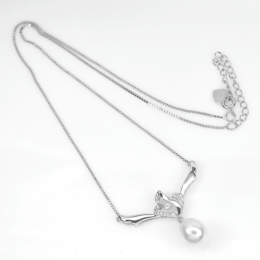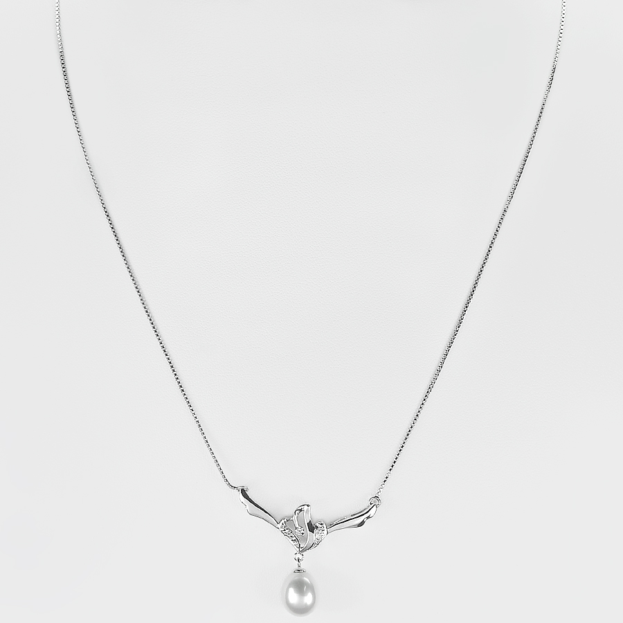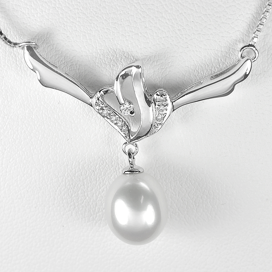 4.93 G. Natural White Pearl 925 Sterling SilverNecklace Length 9 Inch.