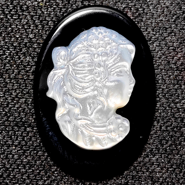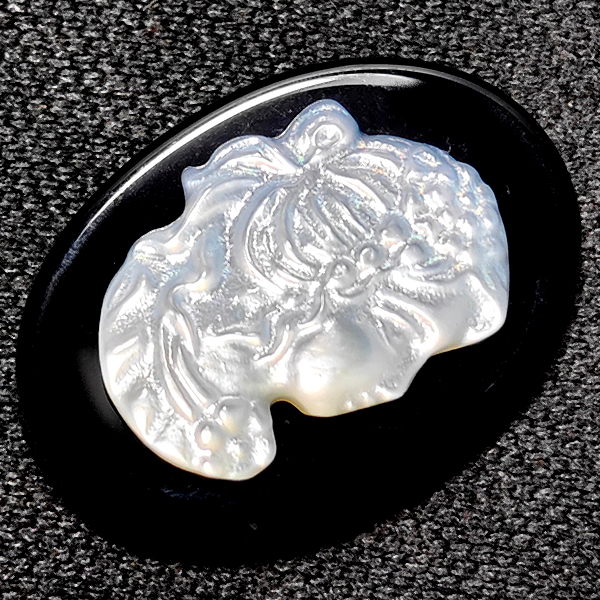 Natural White Sea Shell 6.63 Ct. Woman Carving Cameo on Onyx 18 x 12.9 Mm