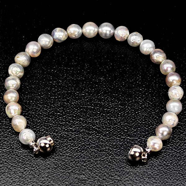 Bracelet Jewelry Multi Color Natural Pearl 12.66G. 952 Sterling Silver Magnet Set Length 6.5 Inch.