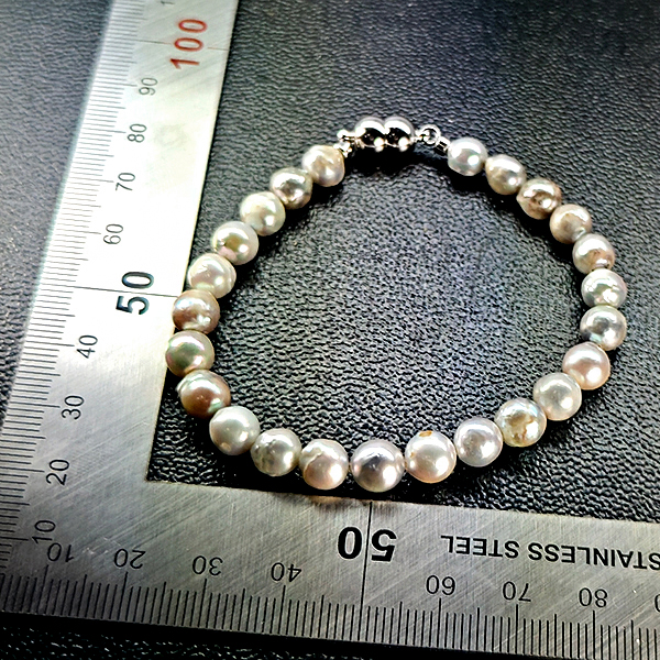 Bracelet Jewelry Multi Color Natural Pearl 12.92G. 952 Sterling Silver Magnet Set Length 6.5 Inch.