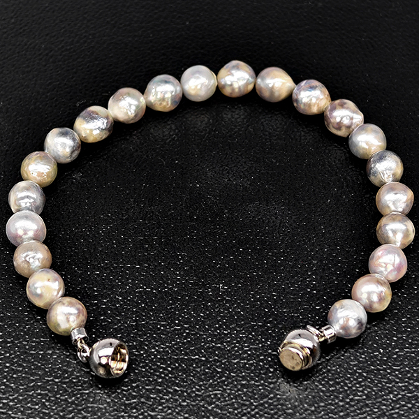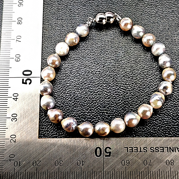 Bracelet Jewelry Multi Color Natural Pearl 12.30G. 952 Sterling Silver Magnet Set Length 6.5 Inch.