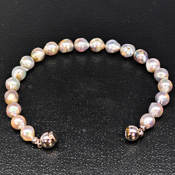Bracelet Jewelry Multi Color Natural Pearl 12.04G. 952 Sterling Silver Magnet Set Length 6.5 Inch.