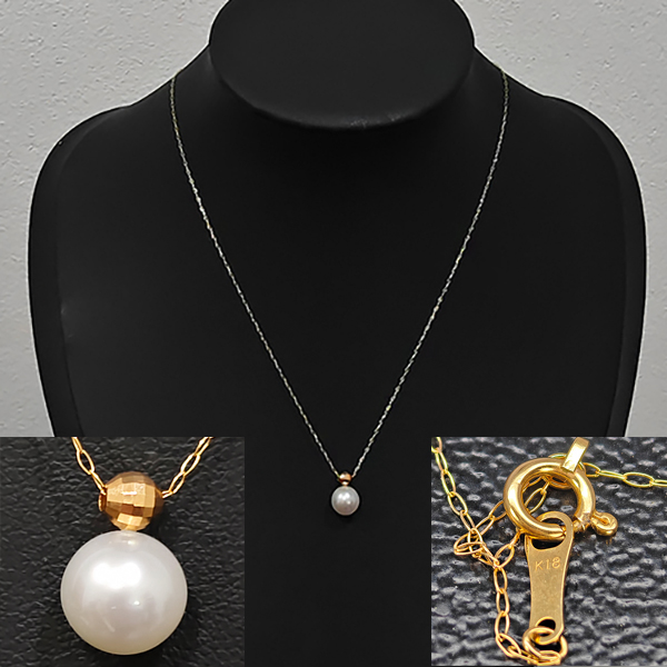Multi Color White Natural Pearl 7.5 Mm With Yellow Gold 18K Jewelry Necklace 1.3 Grams