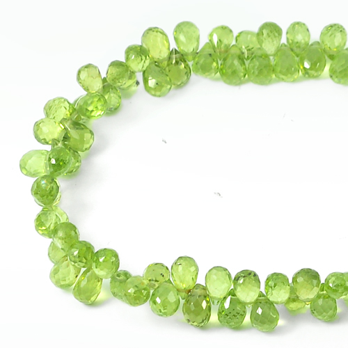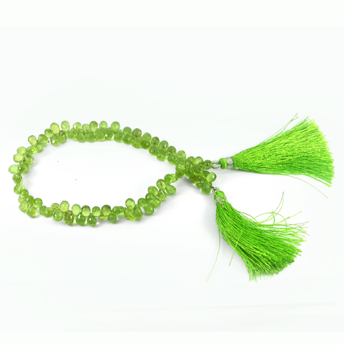 Unheated 91.30 Ct.Briolette Shape Natural Gem Green Peridot Beads Length 9 Inch