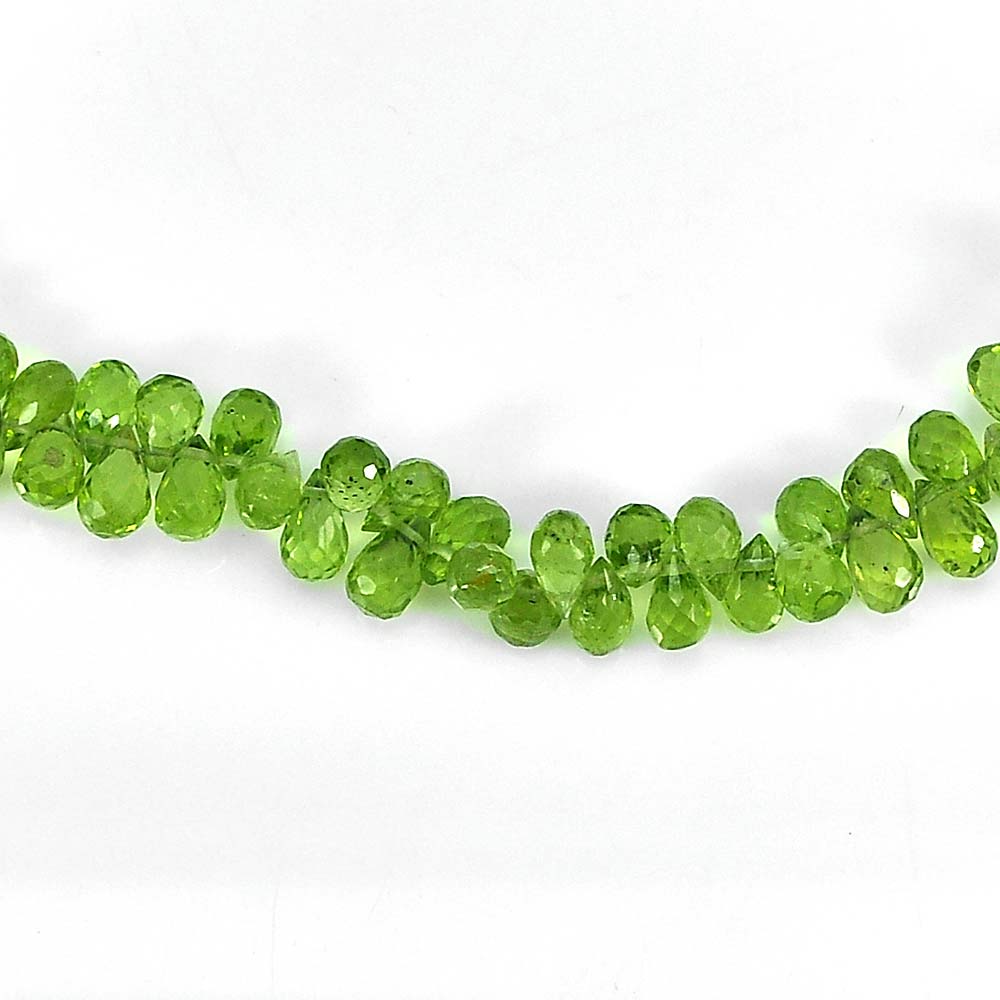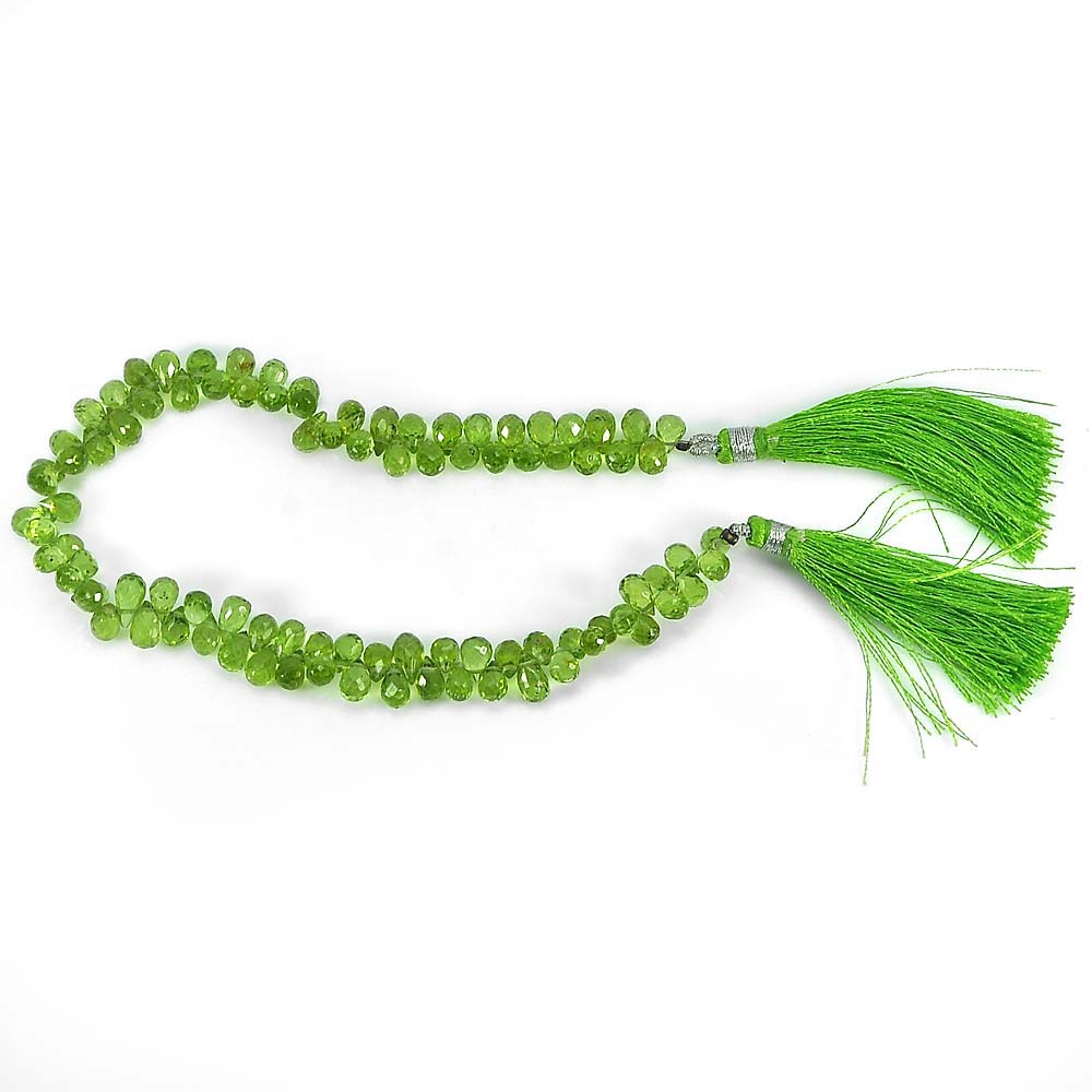 91.65 Ct. Briolette 7 x 4.6 Mm. Natural Gems Green Peridot Beads Length 9 Inch