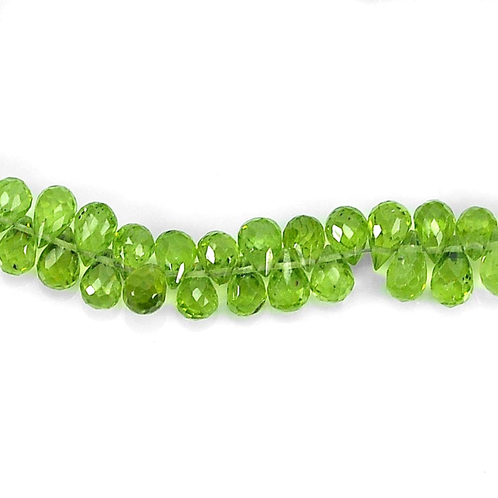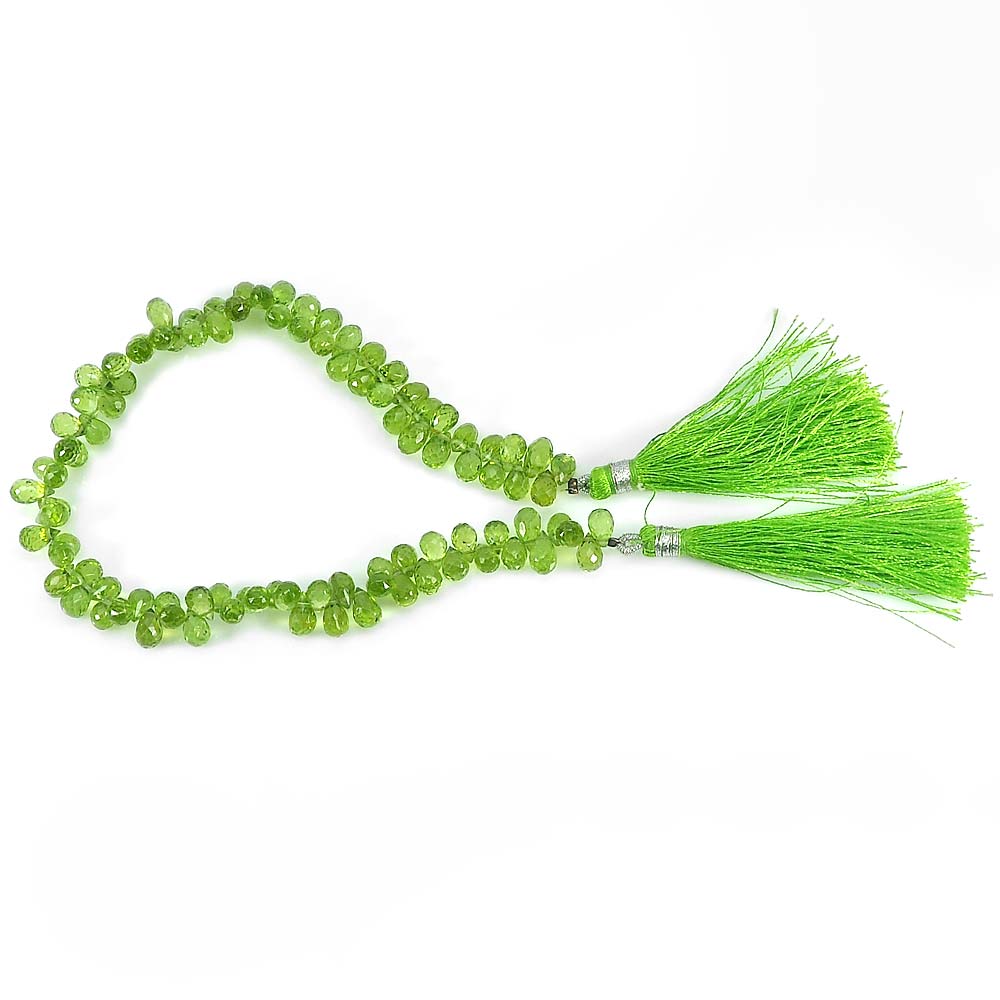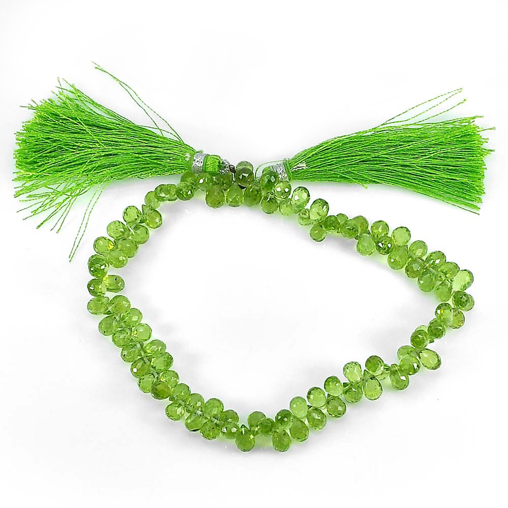 Unheated 93.35 Ct.Briolette Natural Gemstones Green Peridot Beads Length 9 Inch.