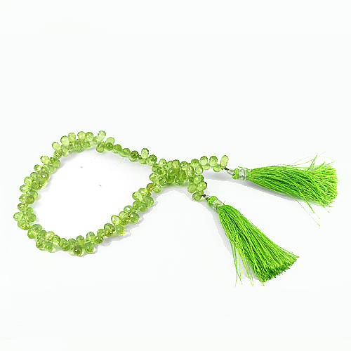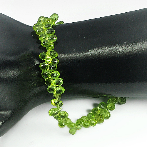 Natural Green Peridot 80.05 Ct. VVS Briolette 6.2 x 4.3 Mm Beads Length 9 Inch